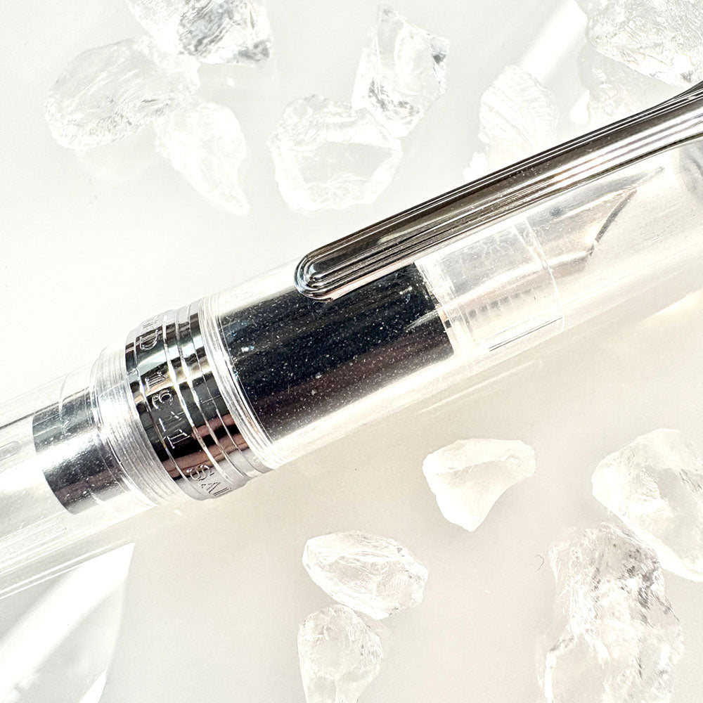 氷の結晶と気泡を刻印することで、氷の白銀の華やかさを表現しています。 【基本仕様】 プロフェッショナルギア 21K/大型 ペン種:EF、F、 MF、M、 B、Z、 MS コンバーター内臓